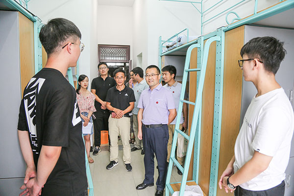下午,石道金、潘国忠等学院领导在各二级学院相关负责人的陪同下看望了2018级新生,带去全院师生的欢迎和关怀。“我是来自贵州的大学生,感谢学院暑期的看望,带来了圆梦奖学金,帮助我实现了大学梦。”“今天的天气有点微凉,还下雨。但还是无法阻挡我想早一些到学校报到的心情。我要把大学生活过得充实有计划,也会努力把自己的专业学好。” 新生们纷纷表达自己入校的喜悦。