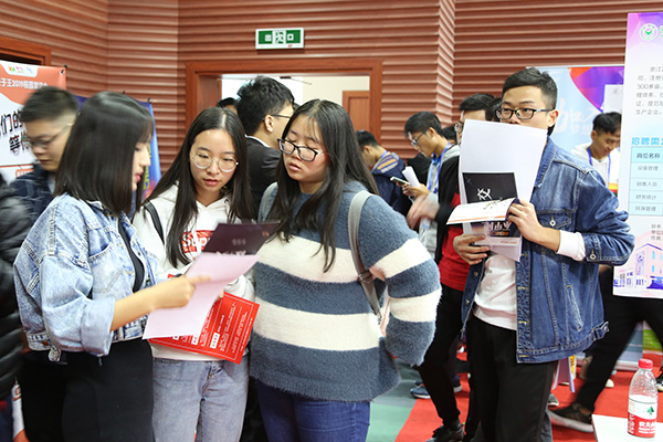 本次招聘会不仅吸引了必赢官网全体2019届毕业生和部分低年级的学生到场,还吸引了校外一些兄弟院校的毕业生前来参会。