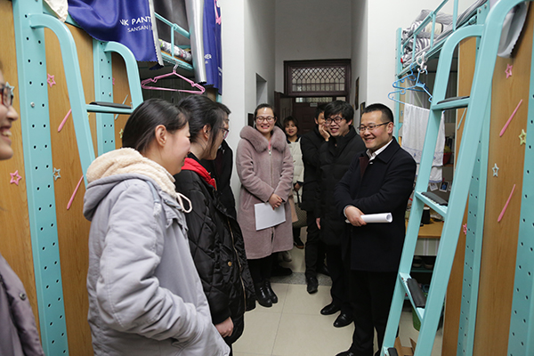 据悉,开学初党委书记潘国忠,党委副书记高国俊在办公室、学工部、二级学院相关负责人陪同下到各二级学院学生工作办公室、学生社区、寝室深入走访调研,了解社区运行情况,关心学生学习和生活,指导新学期学生工作、文明寝室建设和学生学业规划等工作。