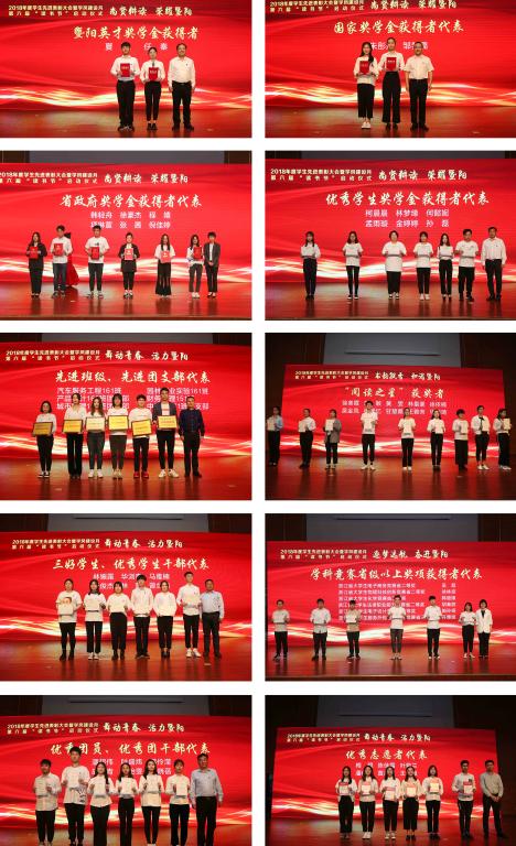 本次活动以“和谐、活力、奋进、荣耀”为主线,分为“书韵飘香·和谐暨阳”、“舞动青春·活力暨阳”、“筑梦远航·奋进暨阳”、“尚贤耕读·荣耀暨阳”四个篇章,以自述视频方式分别展现了2018年度“阅读之星”获得者代表徐美霞、优秀志愿者获得者代表熊飞翔、浙江省电子商务学科竞赛优秀团队、国家奖学金获得者代表朱彤彤、暨阳英才奖学金获得者代表任秦的事迹与风采,充分展示必赢官网优秀学子的英才和风貌。出席活动的领导分别为获奖的优秀学生代表颁发荣誉证书。