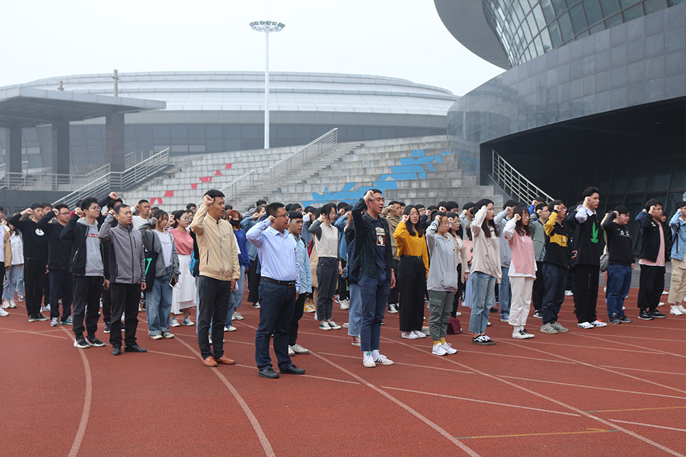 4月29日上午,学院在田径场隆重举行“传承五四精神,做时代新青年”升旗、宣誓仪式。学院党委副书记高国俊,学工部及各团学组织负责人出席活动,师生代表共300余人参加活动。“俞秀松”团支部书记周星雨在国旗下宣讲,优秀团员代表李昀忆同学在国旗下作“五四长存,精神不灭”主题演讲,在“俞秀松”团支部副书记徐中烨的带领下,全体团员重温入团誓词,表达了勤奋学习、积极工作,为共产主义事业奋斗的决心。仪式最后环节,进行了签名活动。