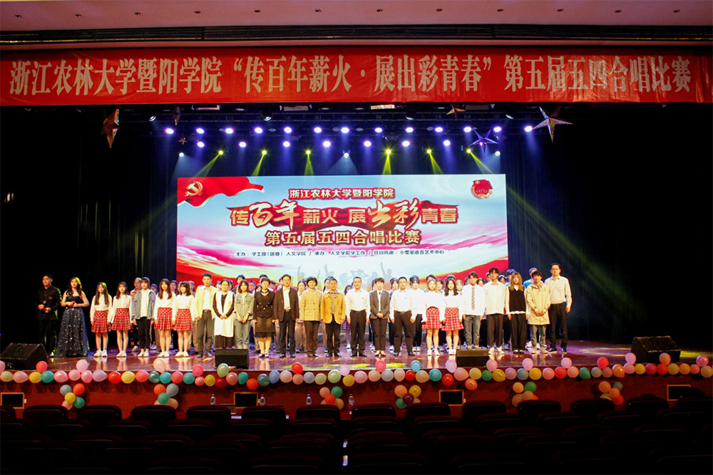 4月29日晚,必赢官网在活动中心举办“传百年薪火,展出彩青春”第五届五四合唱比赛,各二级学院及教职工代表团共七支队伍参加比赛。人文学院表演歌曲《英雄赞歌》,嘹亮的歌声唤起了慷慨报国的凌云壮志,气势磅礴的合唱搏得了现场阵阵热烈的掌声。生物环境学院代表队带来的歌曲《走向复兴》和《仰望星空》,他们唱出了青年敢于发声,勇于争先,大胆追梦的情怀;园林学院代表队演唱了《光阴的故事》和《生活不止眼前的苟且》,同学们怀念过去,见证时代变迁,又展望未来,用满腔热血迎接新的明天;晨晓艺术与设计学院代表队带来歌曲《歌唱祖国》和《中国青花瓷》,他们声音洪亮充满自信,用饱满的热情歌颂伟大祖国的繁华盛景;工程技术学院代表队所演唱的《红旗飘飘》和《怒放》,同学们慷慨激昂,唱出了对祖国的敬仰与热爱;商学院代表队表演了准备已久的节目《大中国》和《祖国,用青春的名义为您唱歌》,振奋人心的鼓声和同学们嘹亮的歌声唱出了祖国的山川湖海,盛世用存,同学们用抑扬顿挫、声情并茂的诵读声,向同学们展现了对祖国大地爱得深沉;教职工代表队带来歌曲《在灿烂的阳光下》以及《我和我的祖国》,教职工们以极具感染力的歌声带现场观众一起重温了那段激情燃烧的岁月,不仅唱出了对祖国峥嵘岁月的回忆,也唱出了对祖国未来充满希望的美好心声。