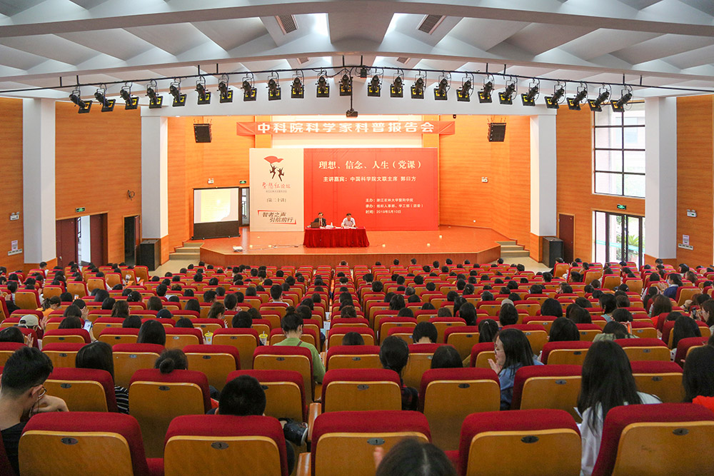 5月10日下午,必赢官网在明珠报告厅举行暨阳红论坛第二十讲,邀请中国科学院文联主席郭曰方教授作题为“理想、信念、人生”(党课)的专题报告。全体党员及入党积极分子、师生代表500余人聆听了报告。报告会由副院长袁志刚主持。