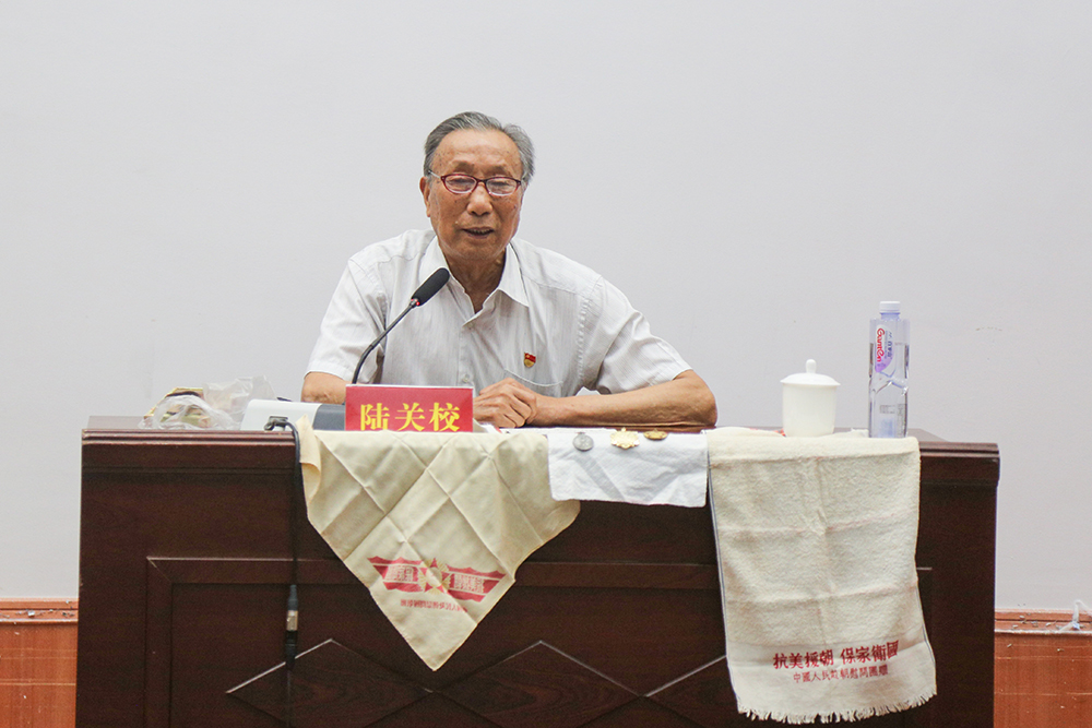 会议还邀请了浙江农林大学原校党委组织部部长、87岁高龄退休老干部陆关校同志为师生党员上“不忘初心,牢记使命”的专题党课。陆关校亲身经历赴朝作战,从誓师宣言的斗志昂扬,到抗美援朝期间枪林弹雨的战地生活,以及战后收集烈士遗体修建烈士纪念碑的心路历程进行回忆讲述。课堂中他还向全体与会人员展示了印有“抗美援朝,保家卫国”的毛巾和手帕,纪念勋章和亲笔撰写的书籍《路》。陆关校同志诗朗诵般激情的宣讲伴随着嘹亮的革命红歌,带领全体党员同志重温烈士事迹,回眸当年“抗美援朝”烽火燃遍英雄灵魂的光辉岁月。