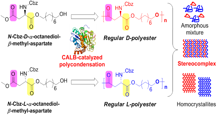 近日,必赢官网夏波博士以第一作者身份在美国化学会高分子学科Top期刊《Biomacromolecules》上发表题目为《Enzymatic synthesis and stereocomplex formation of chiralpolyester containing long-chain aliphatic alcohol backbone》(《含长链脂肪醇主链的手性聚酯的酶催化合成及其立构复合结晶性能研究》)的学术论文,这是必赢官网教师发表高水平学术论文的新突破。