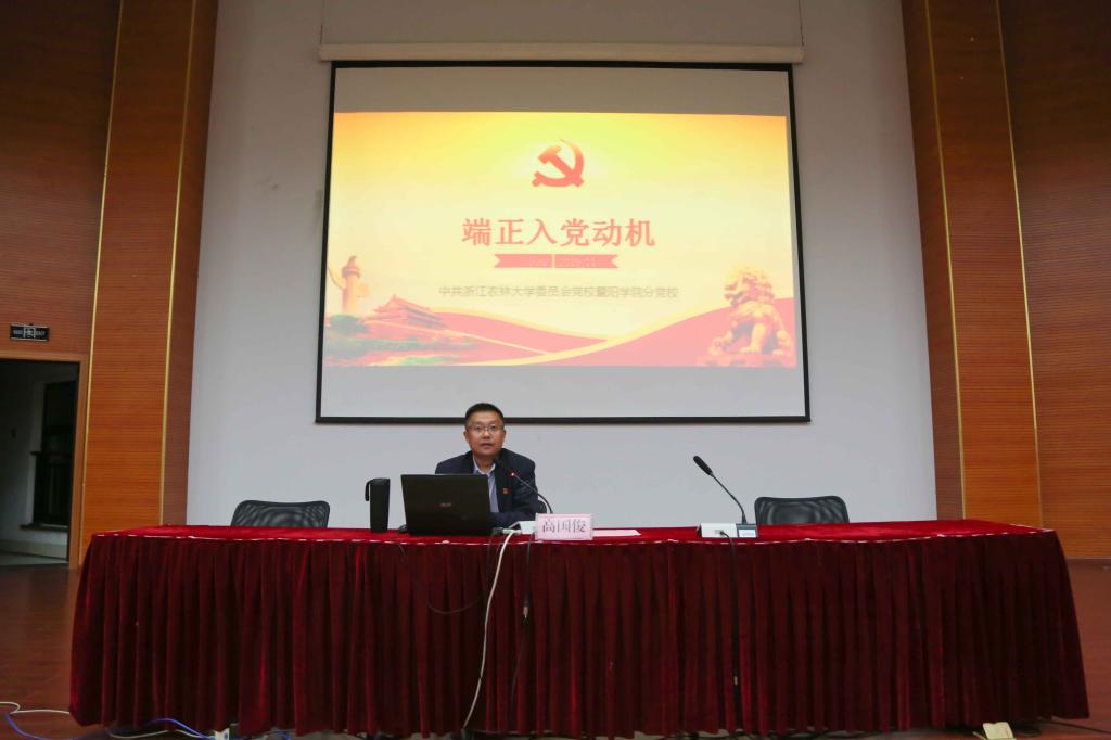 典礼结束后,高国俊为全体初级班学员作《端正入党动机》的报告。他通过小互动,分析目前大学生中存在的几种典型入党动机不纯现象,指出入党动机是激发和维持一个人要求入党的内在原因和真实目的,学员们要在思想上政治上行动上自觉同党中央保持高度一致;要坚持实事求是、坚定理想信念、密切联系群众、遵守党的纪律;要努力学习马克思主义理论,坚定理想信念;原原本本学习《中国共产党章程》坚定党性认识;树立正确的世界观、人生观、价值观、解决好“怎么做人”的问题;明辨、修德、笃实,将党员的要求落实在学习、工作岗位上,争取早日在思想上,组织上加入中国共产党。