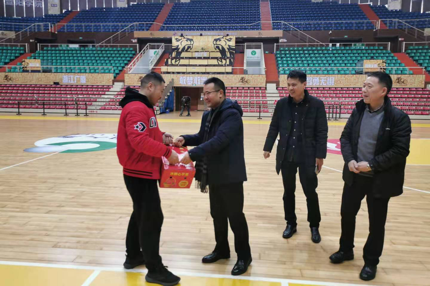 在体育中心,潘国忠亲切看望了仍在为CBA联赛全力护航的全体工作人员,向他们致以新春的问候。他表示,CBA联赛是国内最大的体育赛事,工作量大,涉及面广,安全要求高,赛期长,希望大家在新的一年里不忘初心、牢记使命,继续全力做好赛场维护和后勤服务保障工作,不断提升学院知名度,扩大学院影响力。