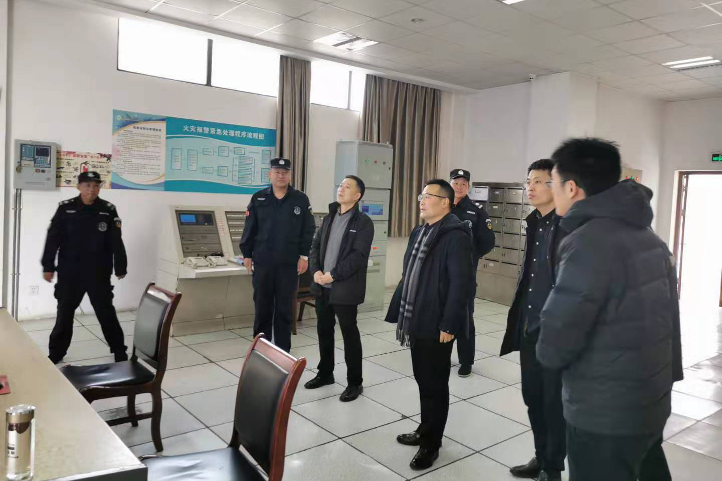 潘国忠看望了在校园警卫站和监控室的工作人员,与大家一一握手,表达新春的慰问。潘国忠表示,学院保卫工作非常重要,承担着保障师生生活和保护校园安全稳定的重要任务,希望大家保持优良的工作作风,再接再厉将来年的工作做得更好。