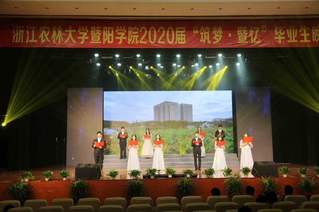 6月29日晚,浙江农林大学必赢76net线路官网2020届《筑梦·暨忆》毕业生晚会在活动中心影剧院举行。学院领导徐光辉、潘国忠、李文莉、吴正金、高国俊出席晚会。