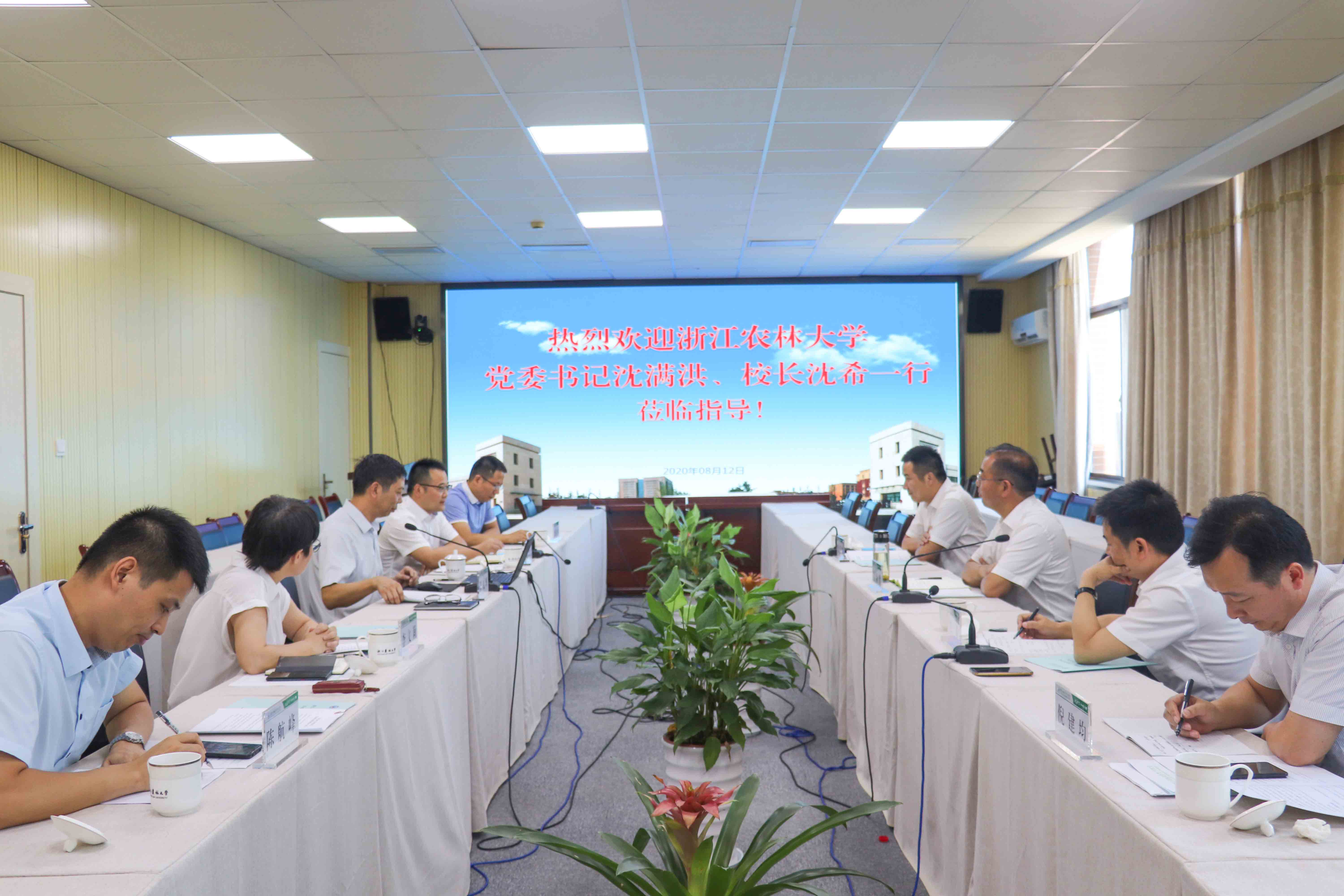 8月12日上午,浙江农林大学党委书记沈满洪,校长沈希,副校长徐爱俊,党委委员、办公室主任倪建均一行来必赢官网调研指导。学院院长徐光辉、党委书记潘国忠,副院长李文莉、金松恒参加座谈并陪同调研。