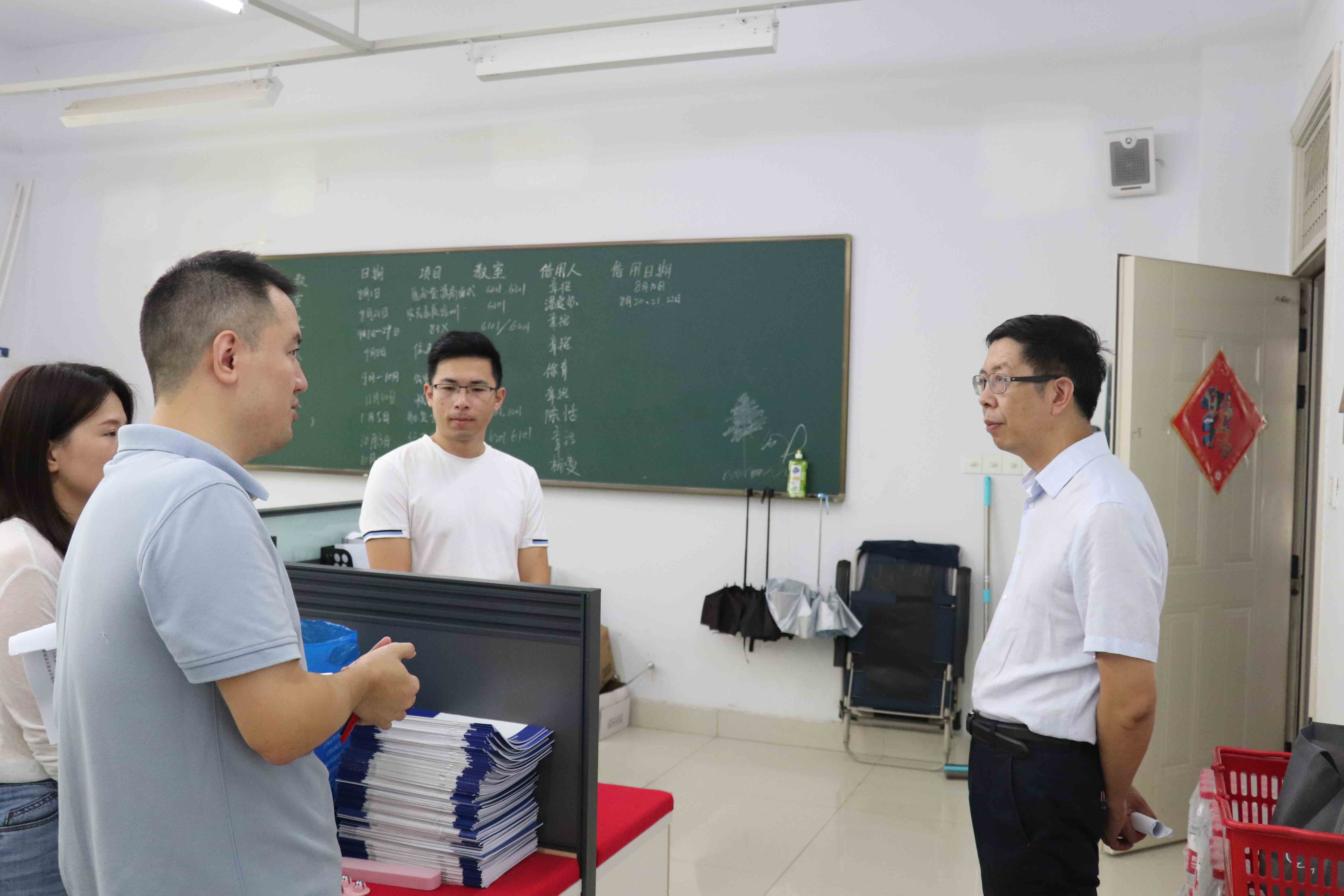 徐光辉一行先后来到招生办、南大门、陶朱商学院,走访调研暑期招生工作进展、疫情期间校园进出管控工作、陶朱商学院项目进展情况,向留校教职员工转达了学院的关心和问候,感谢留校教职员工坚守工作岗位,为学院的安全稳定和事业发展做出的贡献。
