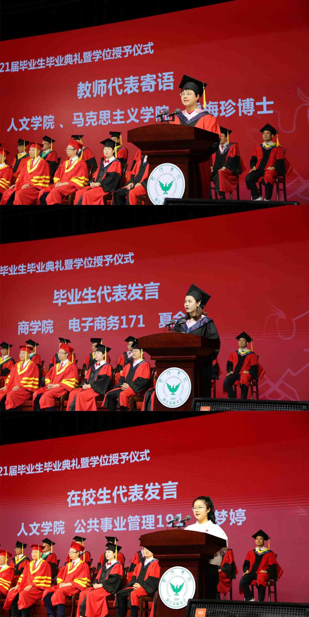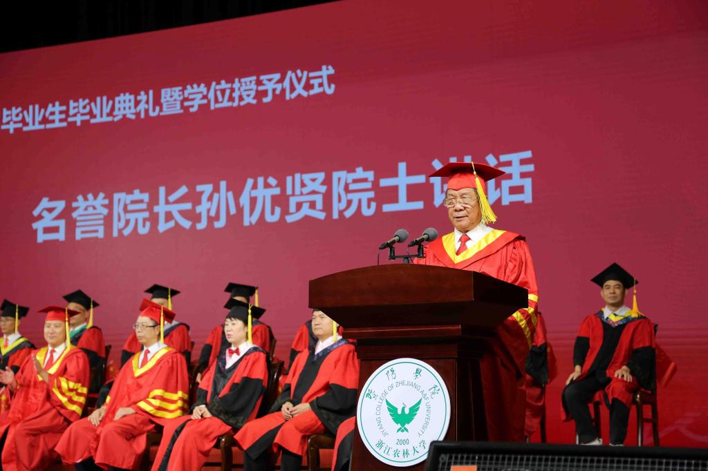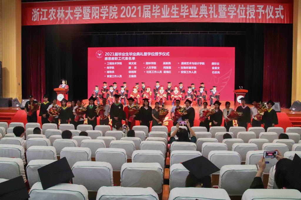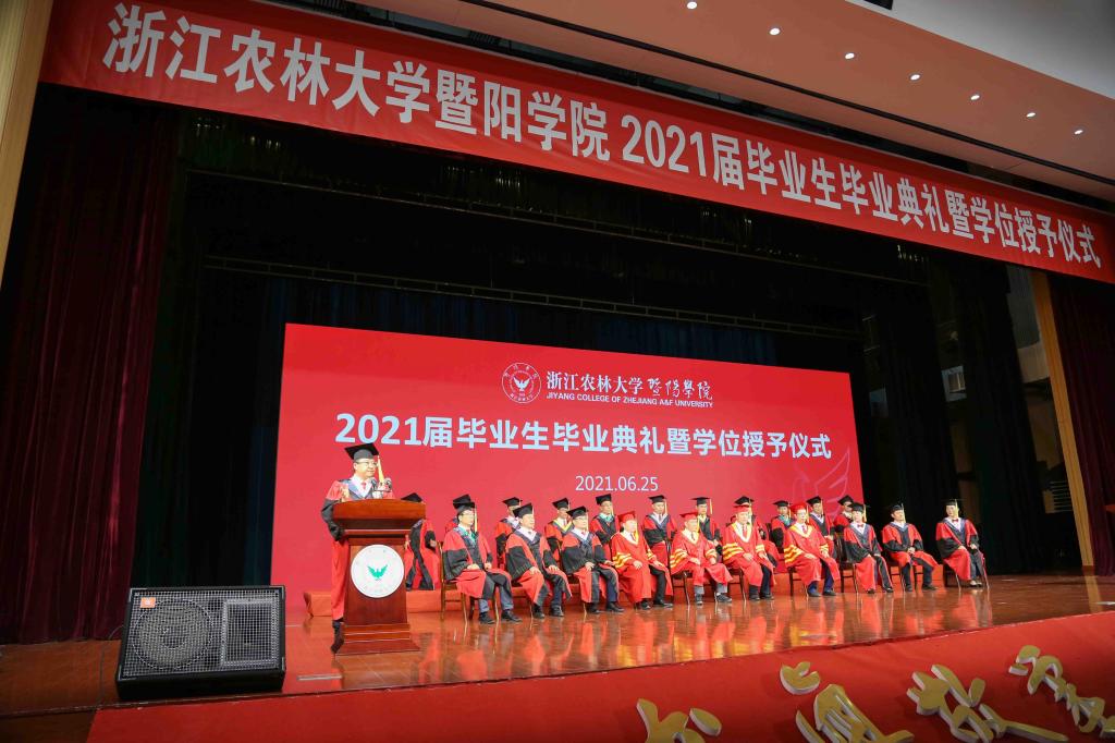 6月25日,必赢76net线路官网2021届毕业生毕业典礼暨学位授予仪式在活动中心影剧院隆重举行。中国工程院院士、必赢76net线路官网名誉院长孙优贤,浙江农林大学副校长徐爱俊,浙江农林大学纪委书记包松永,院领导徐光辉、潘国忠、李文莉、张晓优、吴正金、金松恒、高国俊、李叔君以及全体学士学位评定委员会委员出席典礼仪式并在主席台就坐,典礼仪式由院党委副书记高国俊主持。