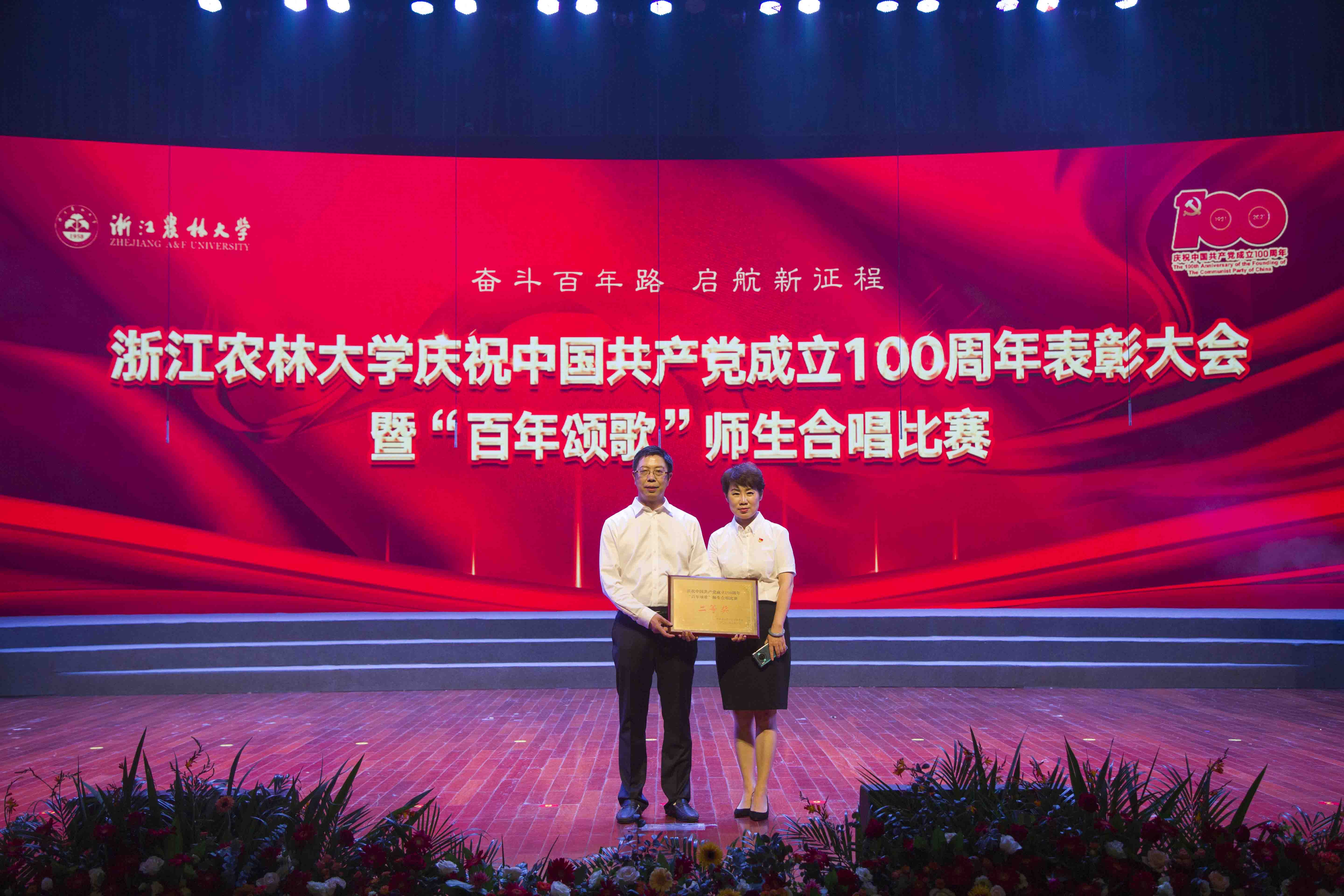 7月1日晚,浙江农林大学在东湖校区影剧院隆重举行“庆祝中国共产党成立100周年表彰大会暨‘百年颂歌’师生合唱比赛”。必赢官网派出83人组成的师生合唱团参加本次比赛,最终以第二名的成绩荣获二等奖,这也是必赢76net线路官网第二次参加学校红歌比赛并婵联二等奖。
