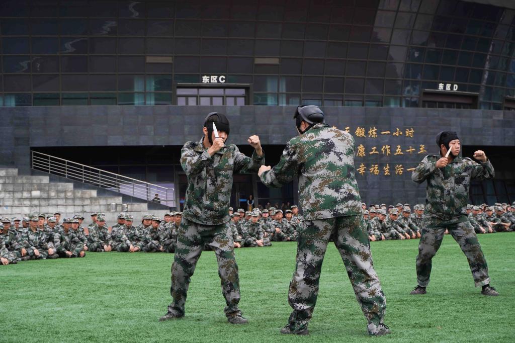 各营学生进行了分列式汇报表演;军训学生代表进行了男、女子擒敌拳展示。检阅中,各方阵精神抖擞、身手矫健、动作整齐、气势凛然,展现暨阳学子昂扬的精神面貌,赢得现场阵阵掌声。