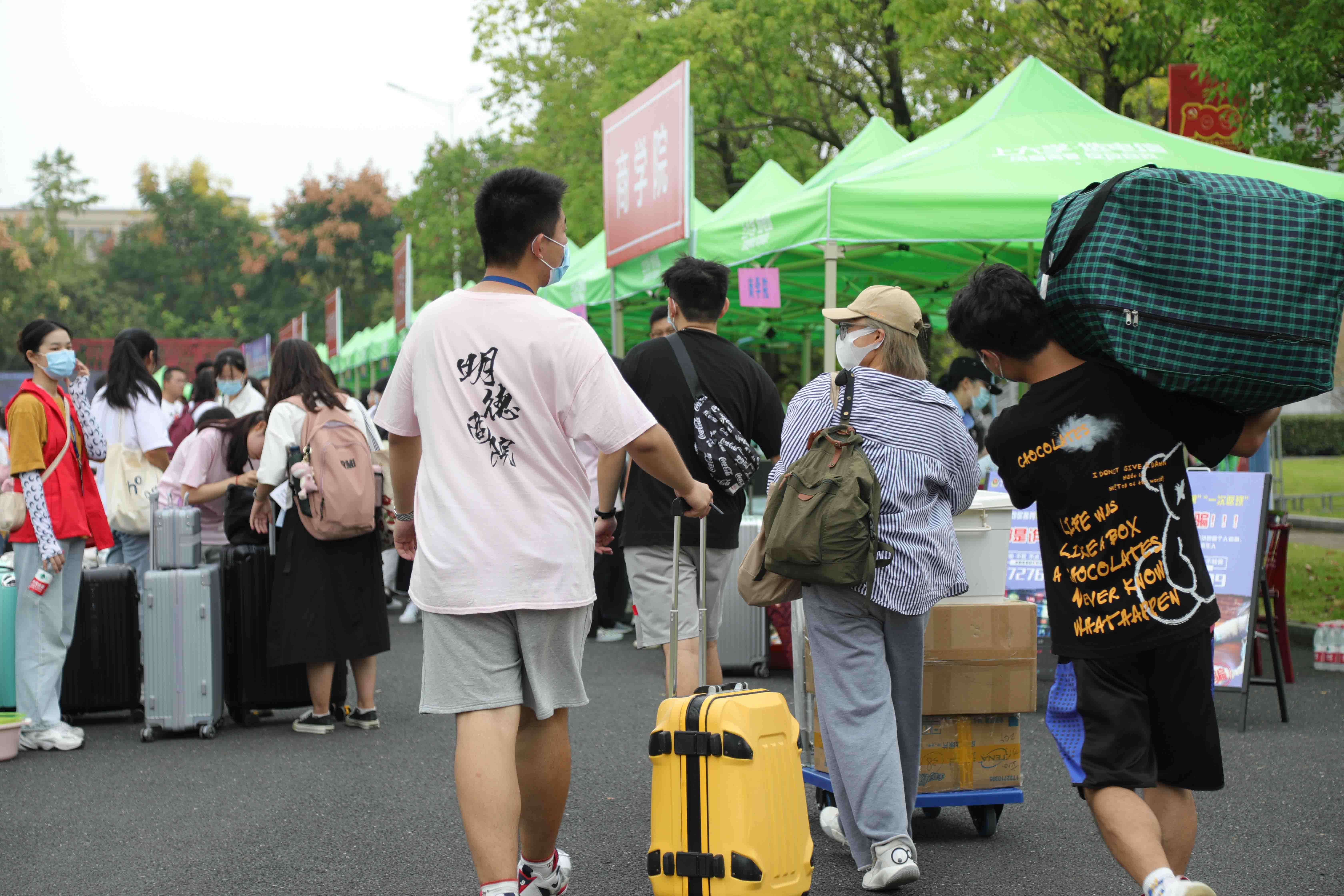 天目湖畔度流光,暨阳大地启梦航。9月11日,学院迎来了2700余名2021级新生,校园里道路两旁彩旗飘扬,鲜艳的迎新标语随处可见,志愿者们身着统一服装热情服务,校园里处处洋溢着迎新的喜悦与期待。