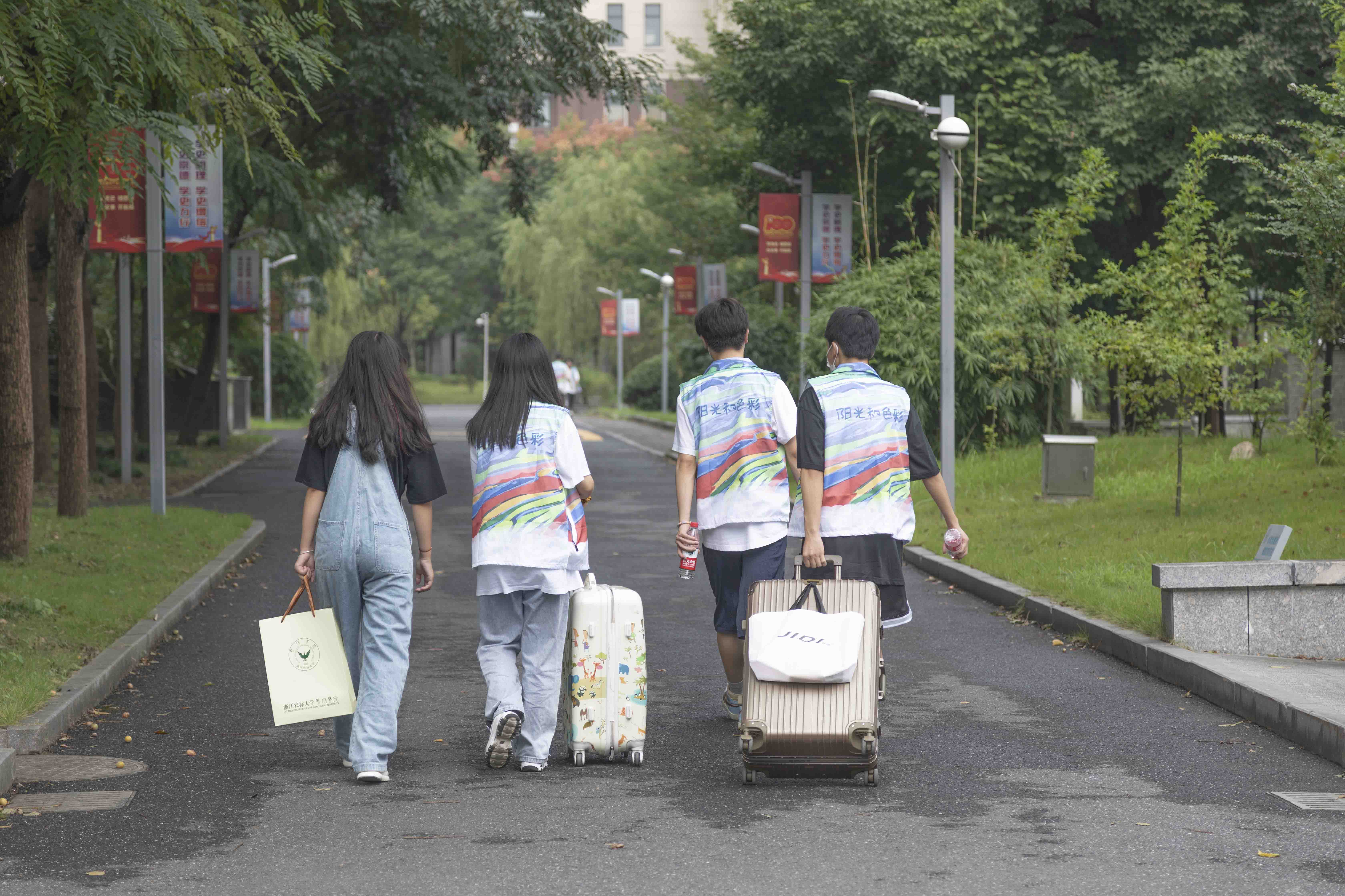 晨曦初露,迎新志愿者在高铁站、校门口迎接新同学,为新生送上了来自暨阳的第一份温暖。