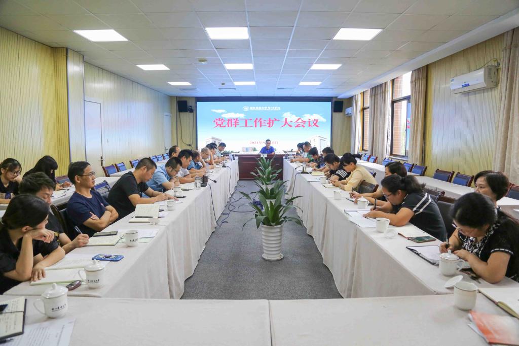 9月15日,学院召开党群工作扩大会议。学院党委书记潘国忠主持会议并讲话,副院长金松恒,党委副书记高国俊,副院长李叔君,各二级学院(部、中心)、各部门负责人,各党总支书记参加会议。