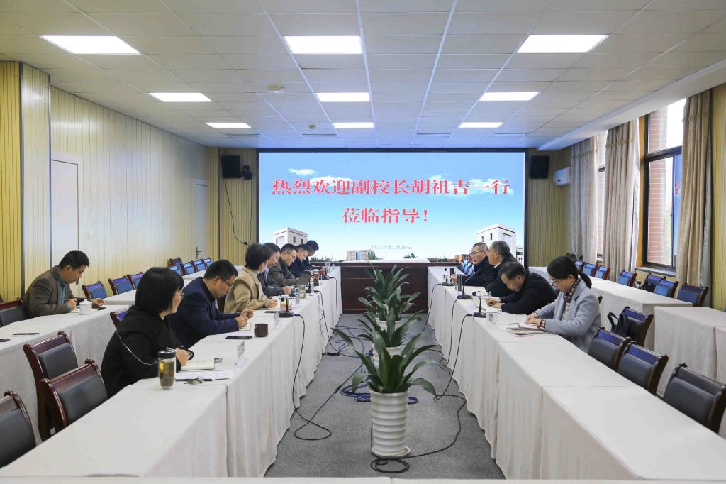 11月29日,浙江农林大学副校长胡祖吉一行来必赢官网调研指导。学校规划处处长梅亚明、人事处处长孙伟圣、计财处处长谭天敏陪同调研座谈,学院全体领导班子成员参加座谈会。
