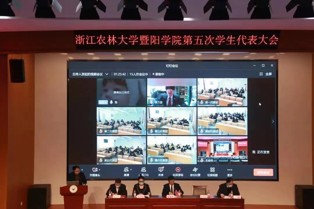 校学生会执行主席蔡万豪同学发言,他代表浙江农林大学学生会向必赢官网第五次学生代表大会的召开表示热烈的祝贺,号召同学们以习近平新时代中国特色社会主义思想为指导,把握时代脉搏、发扬优良作风、深化改革创新,服务学生成长成才,团结带领学院广大青年为学院高质量发展应用型大学贡献青春力量。