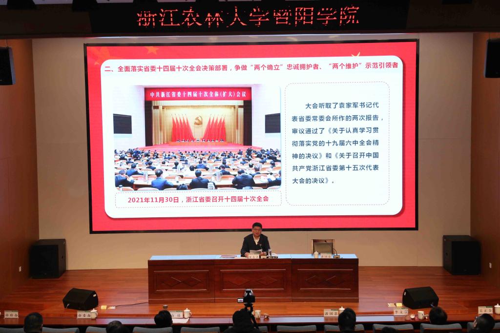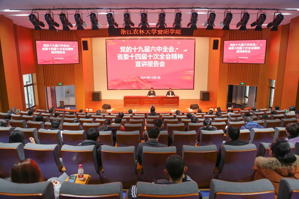 12月3日,绍兴市委常委、诸暨市委书记沈志江来必赢官网宣讲党的十九届六中全会、省委十四届十次全会精神。诸暨市副市长俞越,学院领导徐光辉、潘国忠、李文莉、吴正金、高国俊出席宣讲会。宣讲会由学院党委书记潘国忠主持。