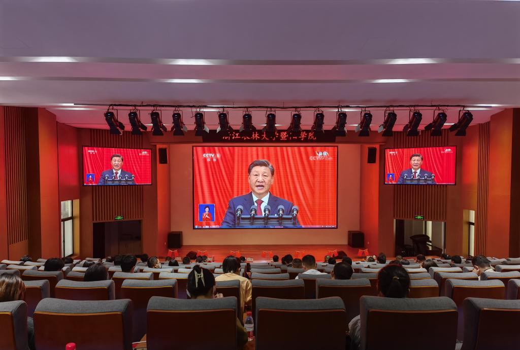 园林学院辅导员 张婧蕾:中国共产党第二十次全国代表大会的召开是我们党进入全面建设社会主义现代化国家、向第二个百年奋斗目标进军的重要时刻。立足百年新起点、置身百年未有之大变局,在这接力百年奋斗的新征程中,作为一名高校辅导员,应该时刻牢记为党育人、为国育才的光荣使命,落实立德树人根本任务,大力培养堪当时代重任的“复兴栋梁、强国先锋”,为实现中华民族伟大复兴的中国梦提供人才支撑。历史的笔已经落到我们手中,时代的责任已经落到我们肩上,我们要以奋进者的昂扬姿态,永远跟党走、奋进新征程。