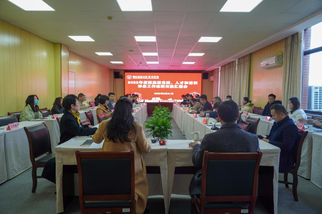2月21日,2022年度党总支书记抓基层党建、人才和意识形态工作述职评议会在行政楼206召开。学院党政班子成员出席会议。述职交流汇报会由组织人事部负责人主持。