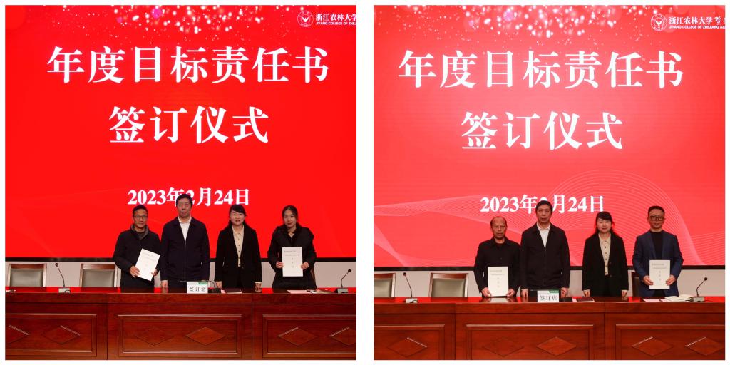 会上,学院领导与教学单位代表、职能部门代表以及附属单位代表签署了2023年度目标任务责任书。