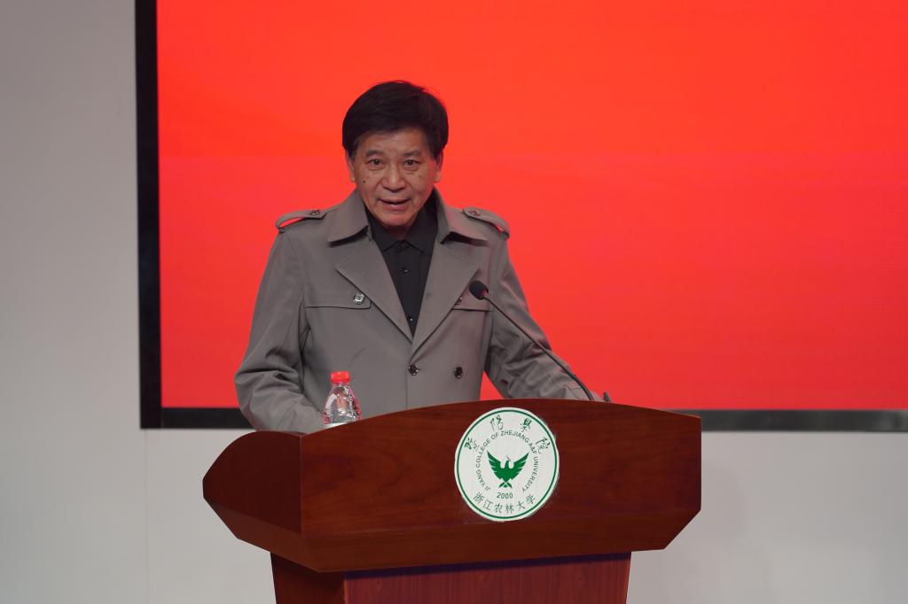 随后,李根有教授发表感言。他表示,此次向学院和诸暨市各捐赠一套自己主编的《浙江植物志(新编)》(10卷)、《宁波植物丛书》(8卷)以及《浙江四野丛书》(4卷)共22部专著,是与团队成员历尽艰辛、花费十年心血编撰而成的,希望这些书能对学院师生的学习和科研发挥一点作用,也借此表达自己的爱校之心和对诸暨市的感激之情。