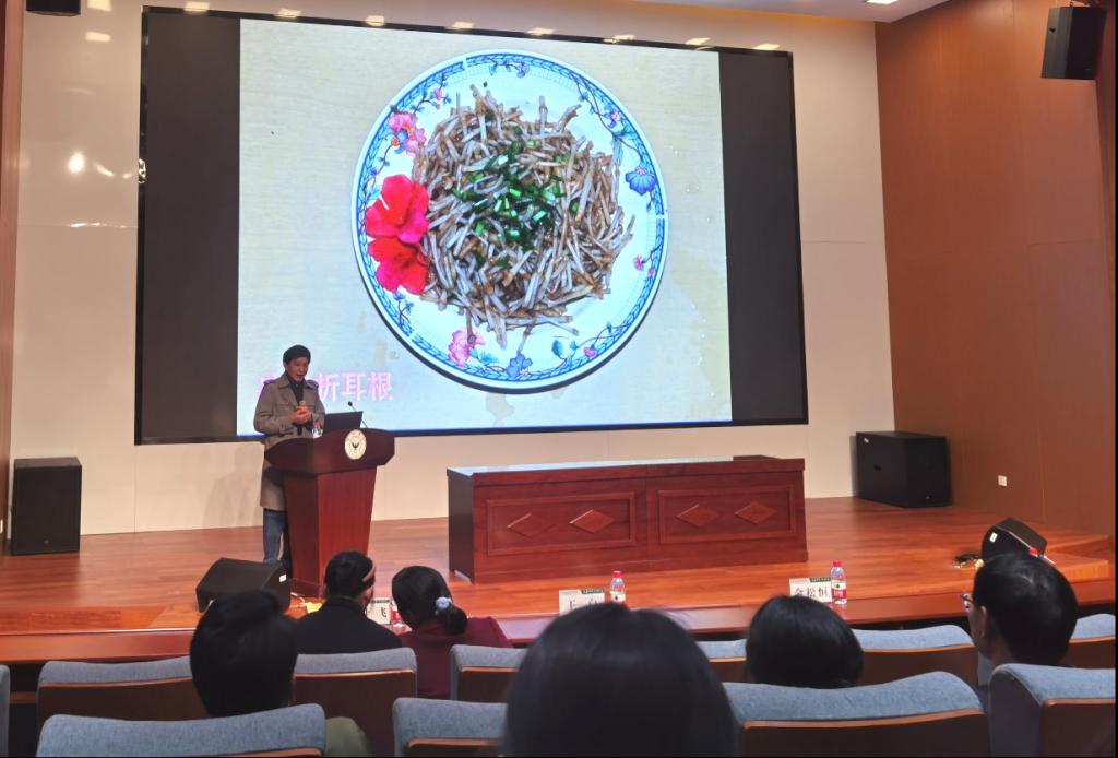 捐赠仪式后,李根有为师生作“保健野菜的识别与采食”讲座。对野菜的概念、用途、资源、历史和现状,野菜的识别、分类、采集、处理、烹调及保健功效等方面进行了详细、生动的讲解。
