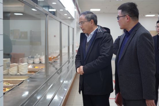 胡祖吉一行实地走访了校园公共区域重点场所、食堂、超市、学生社区等地,对开学以来的各项公共服务和后勤保障工作表示肯定。他指出,要在现有基础上,进一步强化公共保障,优化校园公共环境;要将提高师生满意度作为出发点和落脚点,切实提升后勤服务质量和水平;要发挥服务育人主干力量,及时回应学生关切,抓好日常工作精细化管理和监督。