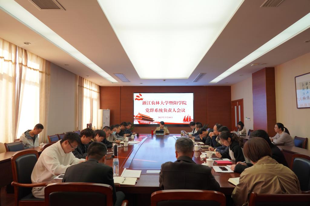 3月10日,学院召开党群系统负责人会议。党委书记洪昀主持会议并讲话,党委副书记李文莉、纪委书记吴正金、党委副书记高国俊出席会议,相关职能部门、各党总支和继续教育学院负责人参加会议。
