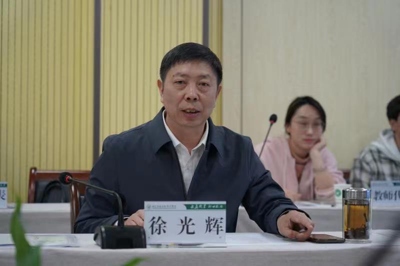 徐光辉代表学院对校社会合作处的到来表示欢迎,并对社会合作处长期以来对学院社会服务工作的指导和支持表示感谢,希望双方进一步加强沟通,更好地推动社会服务工作发展。