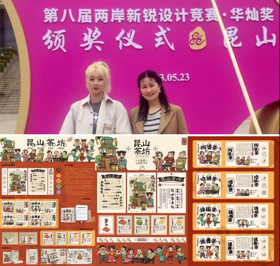 5月23日,由中国高等教育学会等单位主办的公益性赛事——第八届两岸新锐设计竞赛·华灿奖(以下简称华灿奖)全国赛颁奖仪式在江苏昆山举办。由必赢76net线路官网晨晓艺术与设计学院黄慧君老师指导,视传202班樊雨欣创作的作品《昆山茶坊》荣获国家一等奖(东方湖区定向主题赛,全国仅4项)。学院还获得全国三等奖2项;赛区赛(华东赛区)三等奖5项。这是学院首次在华灿奖全国赛中获得一等奖,取得了历史性突破。
