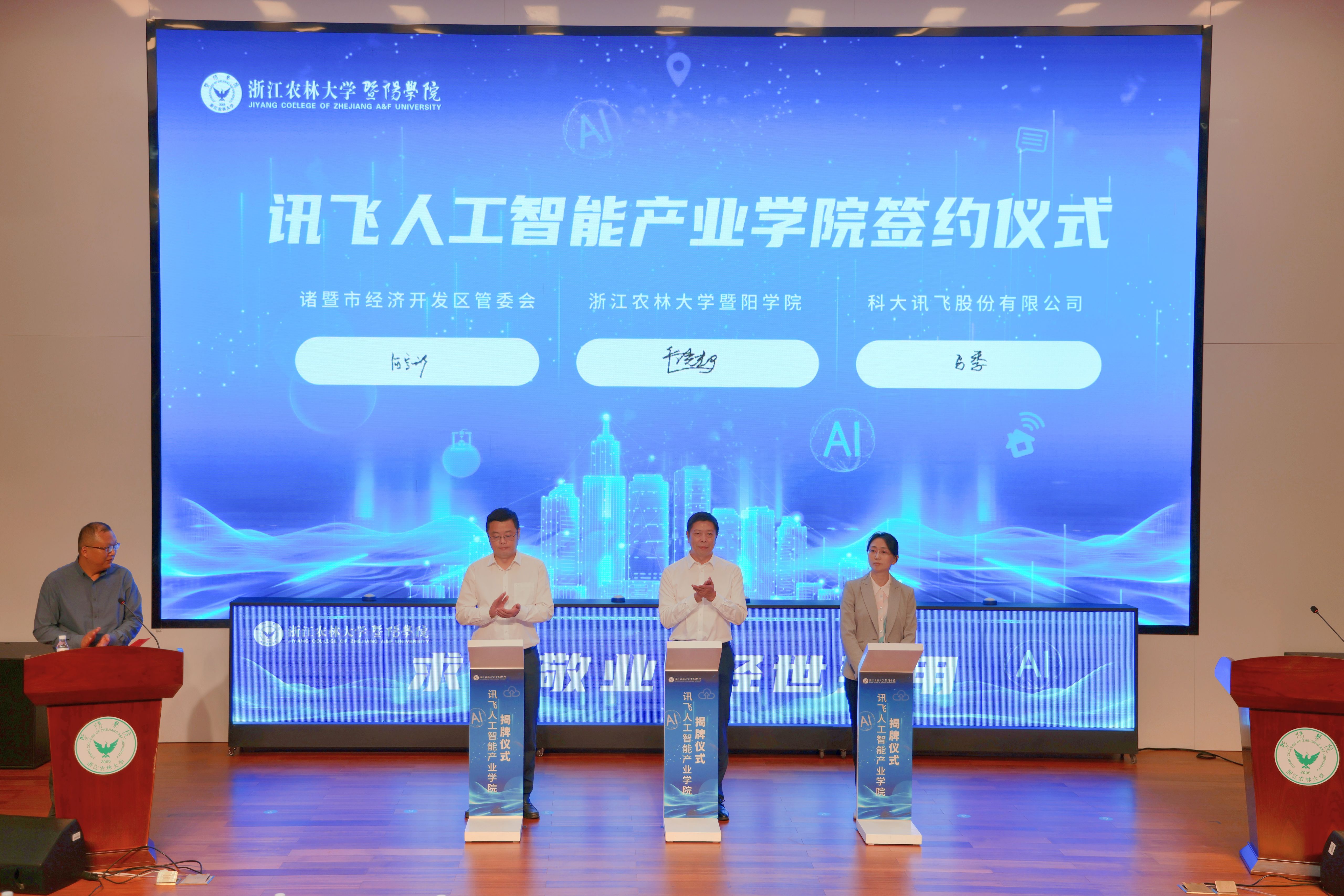 仪式上,校地企三方签订共建协议并共同为讯飞人工智能产业学院揭牌。