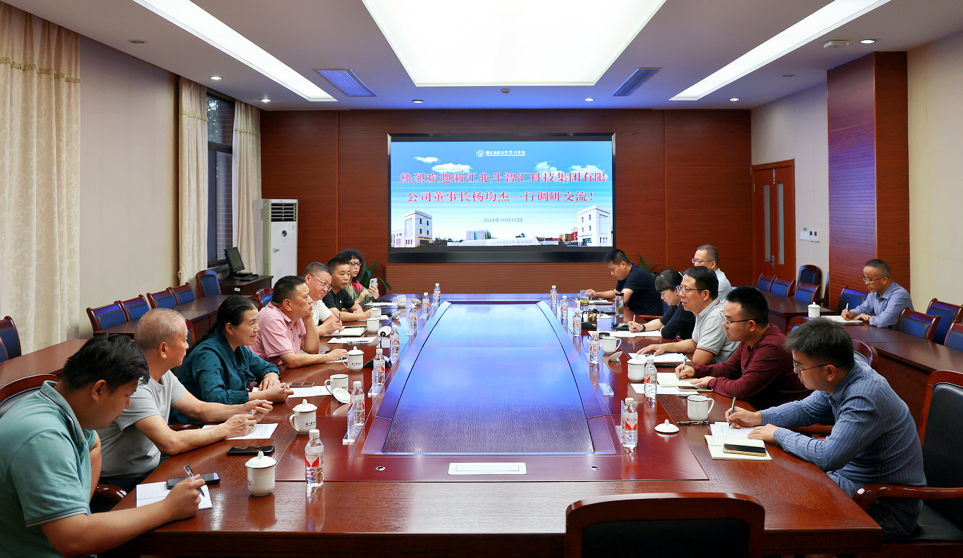 10月15日,浙江北斗智汇科技集团有限公司董事长杨钧杰一行7人来院洽谈合作。会议由学院党委书记洪昀主持,学院副院长金松恒、方铭出席座谈会,党政办负责人、科研管理部负责人参加会议。