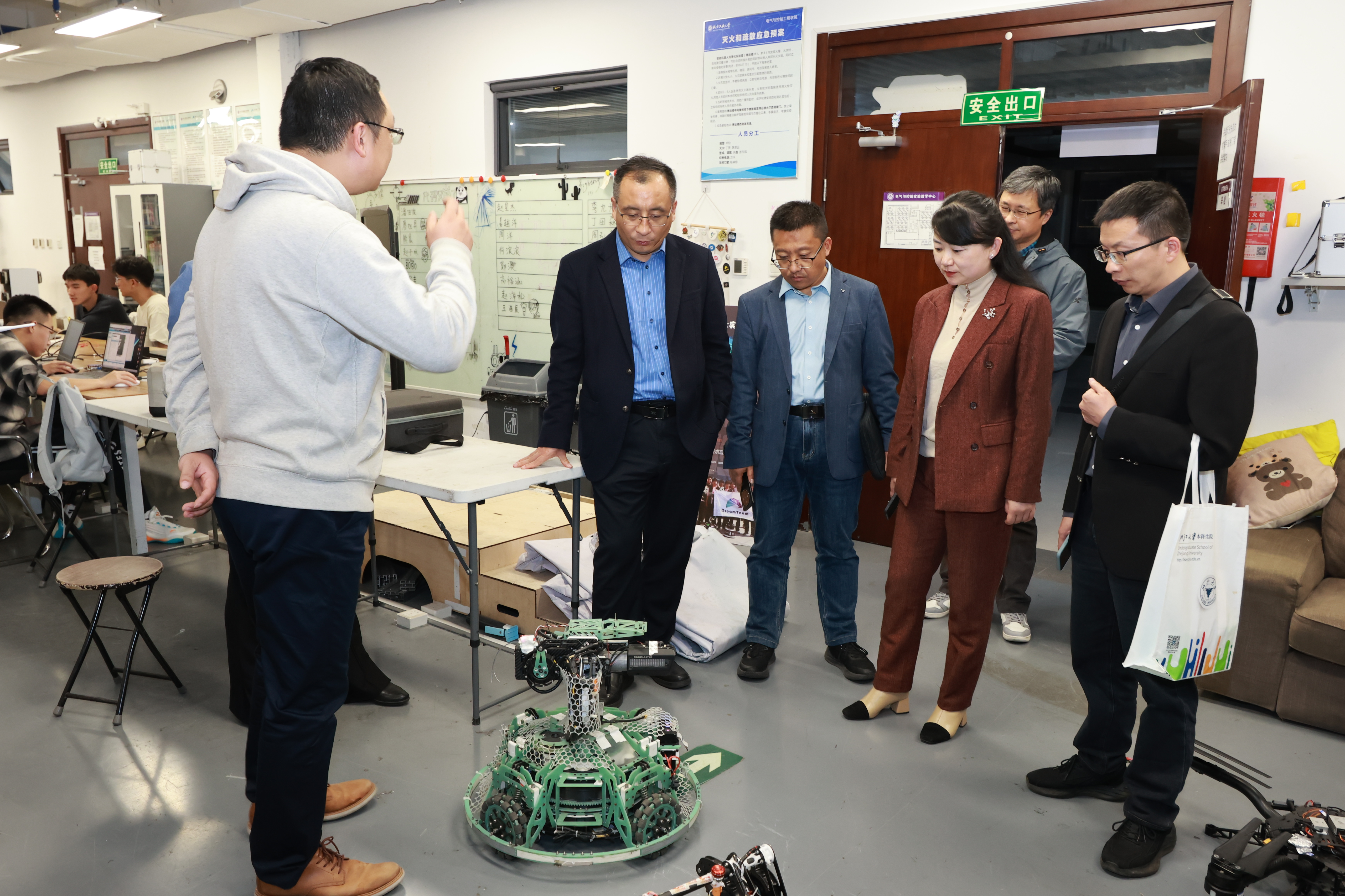 在北方工业大学,调研团成员与校党委书记刘军,校党委常委、副校长栗苹等人进行了会谈。洪昀对北方工业大学的接待表示感谢,并介绍了必赢官网、人才培养、创新创业工作。刘军对代表团一行的到来表示欢迎,并详细介绍了北方工业大学办学情况。双方围绕创新创业学科竞赛、课程思政建设、专业优化调整、产业学院建设、数智赋能教育教学和信息化建设等领域进行了深入交流和探讨。会后,调研团一行还实地走访了北方工业大学工程训练国家级教学示范中心、智能机器人场景化实验室、数字产业学院。