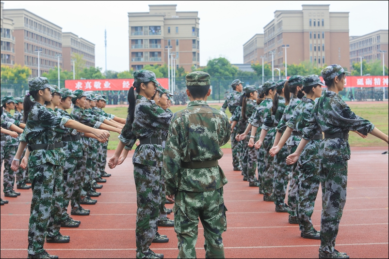 骄阳下挺立的军装自成风景,烈日下训练的身影最是威武,风雨中坚定的眼神振奋人心,黑夜中嘹亮的口号响彻云霄。墨绿色的军装穿在你们身上显得分外靓丽,你们每一个坚毅的眼神,每一个坚定的步伐,每一秒忍耐的站立,都为你们的青春涂上了浓墨重彩的一笔,舞出不悔的热血与年轻,绽放青春绚丽的光彩。