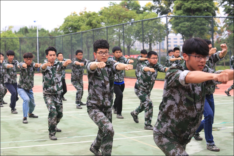 迈着矫健的步伐,喊着响亮的口号,同学们用铿锵有力地动作、充满自信和骄傲的表情,完成了分列式、男子擒敌拳表演和女子队列表演,精彩地汇报了军训的成果,充分展示了同学们过硬的军事素质和良好的精神风貌。
