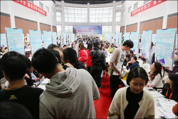 本网讯 为切实做好毕业生就业工作,更好地为毕业生与用人单位搭建双向选择平台,11月3日下午,由学院学工部联合诸暨市委组织部、市人力资源和社会保障局组织的2018届毕业生校园招聘会在学院网球馆举行。