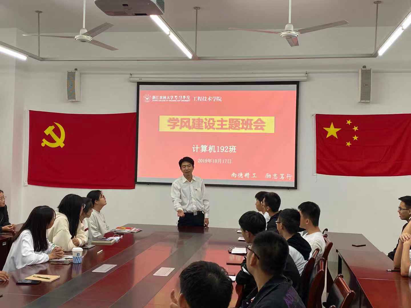 学风建设是高校改革和发展中一个永恒的课题,也是提高学院教学质量,培养高级人才的关键。为深入贯彻全国高校思想政治工作会议精神,以社会主义核心价值观为指导,以学风建设教育为重点,加强教风学风联动工作,根据必赢76net线路官网统一部署,工程技术学院研究决定于2019年10月14日—10月20日以班级为单位分别召开学风建设大讨论主题班会。学院领导、各年级辅导员、各班班主任及全体同学分别参加了相关主题班会。
