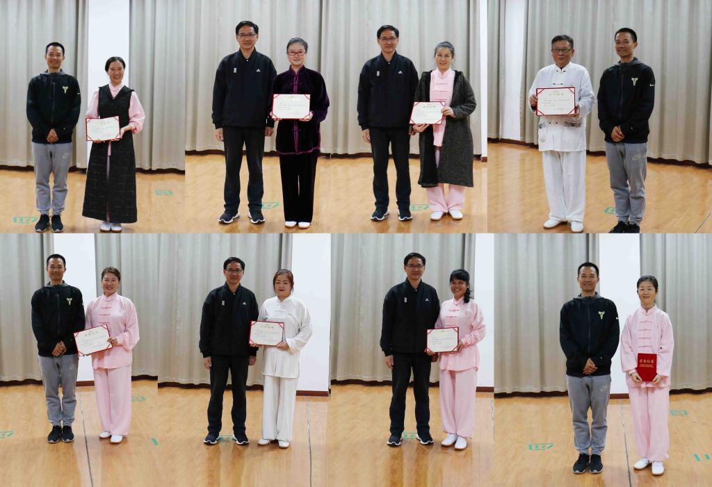 11月15日晚,为丰富教职工文体生活,检验教工形体与武术俱乐部太极拳培训成效,学院工会成功举办了首届“和谐暨阳 太极人生”太极拳比赛。本次比赛分24式和42式太极拳两个级别的比赛,经过激烈比赛,马丽霞、黄朝夕、姚苏梅、李映平分获24式太极拳第一至第四名,刘剑虹、查美琴、闫慧霞、刘晨分获42式太极拳第一至第四名,工会主席徐平荣同志为每个组的第一、第二名进行了颁奖,教工形体与武术俱乐部部长吕志老师为每个组的第三、第四名进行了颁奖。