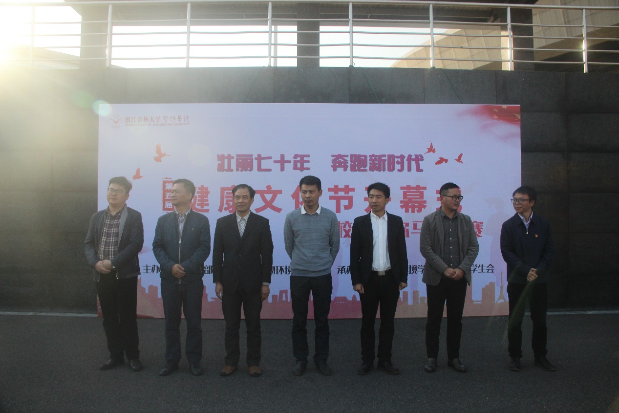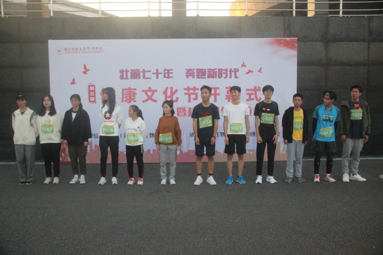 本次健康文化节的主题是“壮丽七十年,奔跑新时代”。恰逢祖国母亲中华人民共和国成立七十周年之际,回首中华人民共和国七十年的风风雨雨和快速发展,学子们用奔跑追赶新时代的步伐。生物环境学院党总支书记徐涌发表致辞后,院长金首文宣布健康文化节开幕。