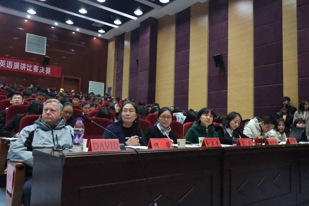 当晚,经过班级初赛、二级学院复赛、半决赛等层层选拔后脱颖而出的20名选手展开巅峰对决,角逐一、二、三等奖。比赛分定题演讲、即兴演讲和专家提问三个环节。定题演讲以“My Big Story in 2049”为主题,选手们展开丰富的想象力,或化身文化使者传递中国传统文化,或畅想未来展现家国情怀,标准的语音面貌,生动的故事情节赢得了观众阵阵掌声;在即兴演讲环节,针对刷脸、交通、环保、婚姻、移动支付等社会热点话题,选手们凭借敏捷的思维和流利的语言表达应对自如;在问答环节,选手与评委David轻松互动,随机应变,对答如流。选手们良好的精神面貌、敏捷的思辨能力及稳健的舞台风范给观众留下了深刻印象,同时获得外教评委David的大加赞赏和高度肯定。经过激烈角逐,最终评选出英语专业组和非英语专业组一二三等奖若干名。