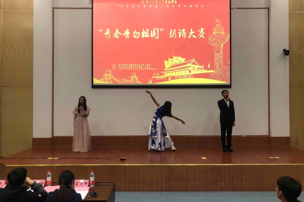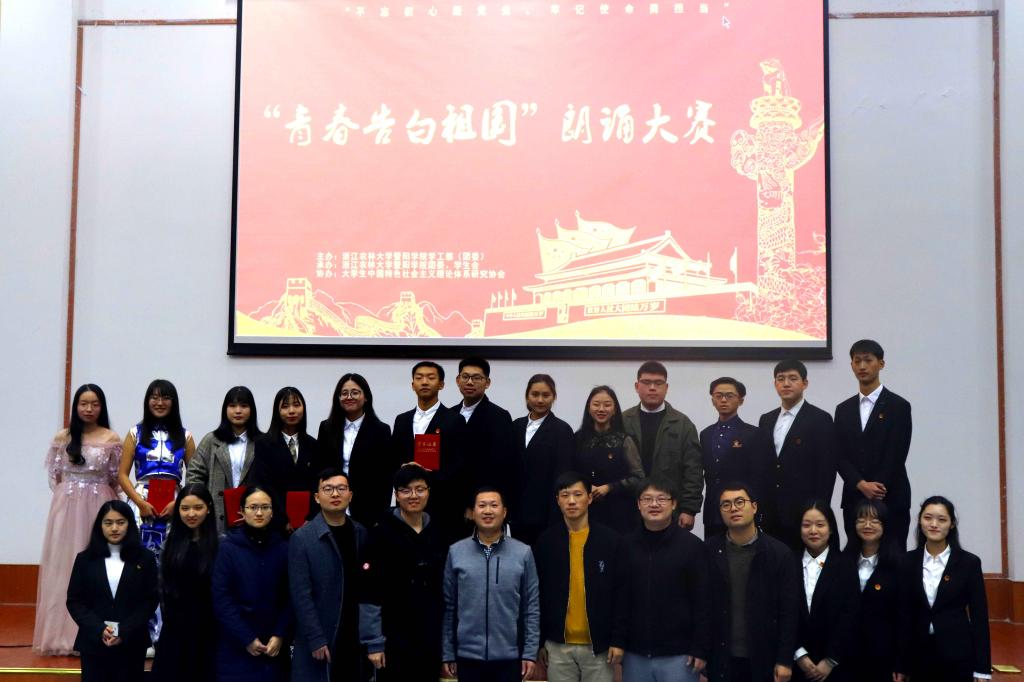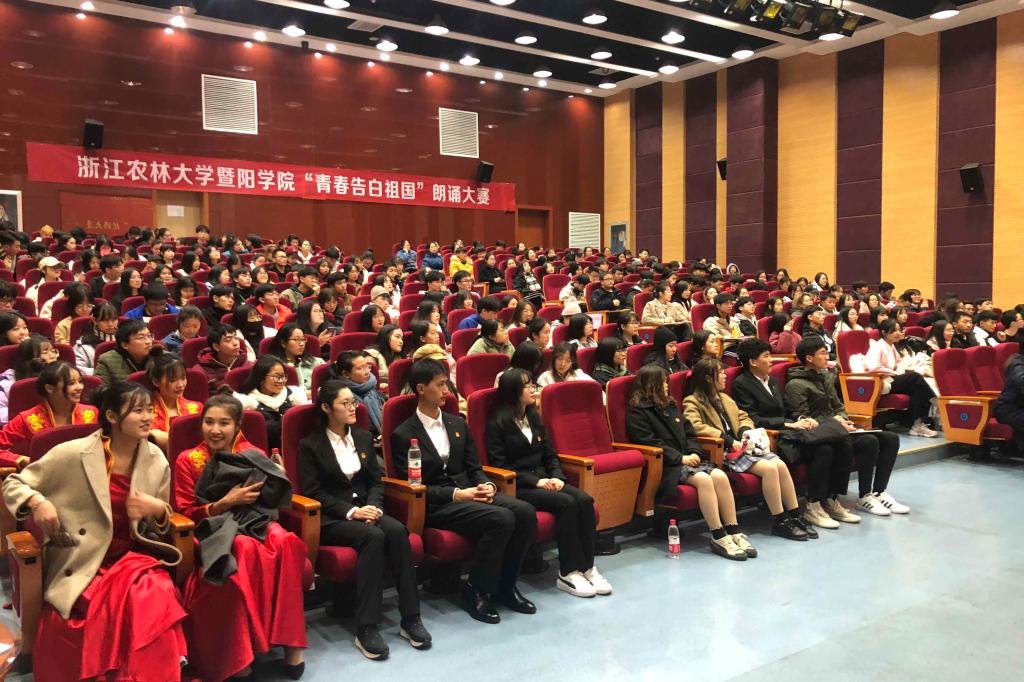 12月4日晚,学院“青春告白祖国”朗诵大赛在图书馆报告厅举行。本次活动共12支队伍进入决赛,各二级学院200余名学生参与活动,活动现场座无虚席。