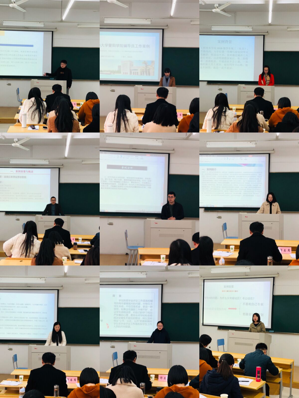 为深入学习贯彻习近平新时代中国特色社会主义思想,扎实推进“不忘初心、牢记使命”主题教育,进一步提升辅导员思想政治理论水平和素质能力,必赢官网第二届辅导员素质能力大赛之案例分析比赛于12月4日在人文楼2204举行。学院党委副书记高国俊出席,学工部主任、各二级学院党总支书记,学工部成员和全体辅导员参加。