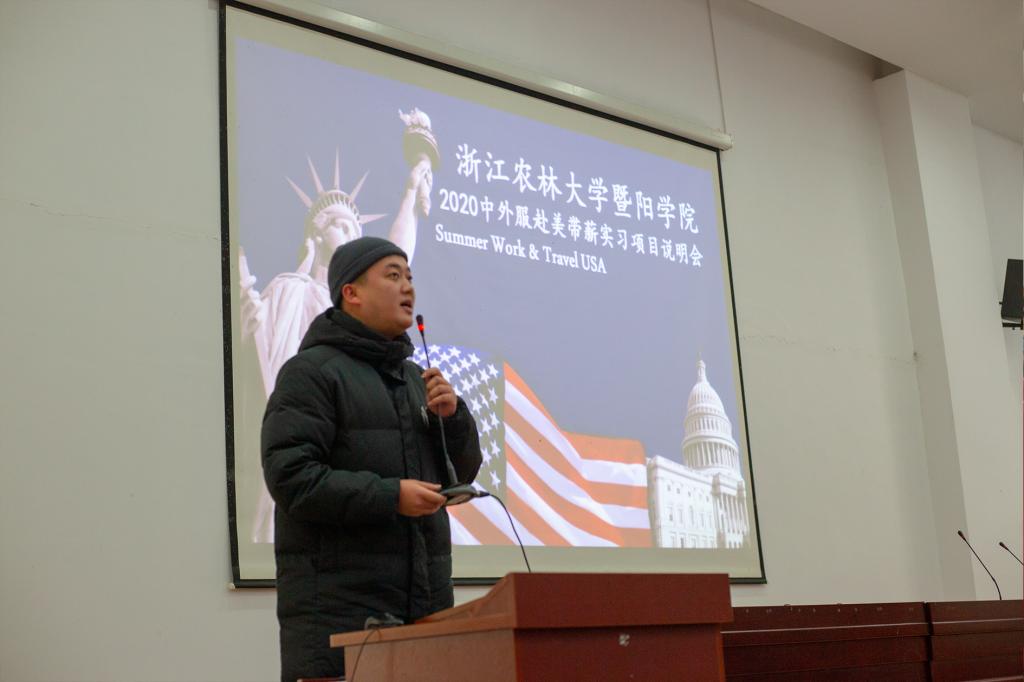 随后,朱俊康对暑期赴美带薪实习项目做了详细的说明,他从项目详情、项目收获及申请流程等进行了介绍,同时分享了参与赴美带薪实习项目同学的经历与收获。