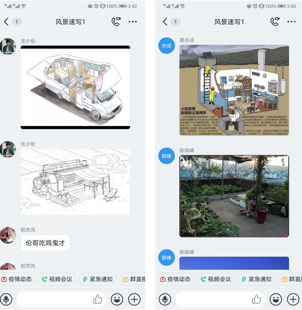 在此背景下,园林学院承担《风景园林速写》教学任务的袁政老师重新调整教学内容,以疫情为背景精选教学案例、重组课件,并在该课程中结合公益性设计竞赛活动——疫区梦享家计划,使19级环境设计的全体同学投身参与此次设计创作中,大家群策群力,接合自身的专业特点设计一个安全、温暖、可抵御疫情的梦享家,最终在线共同完成了一次有意义的“云创作”。