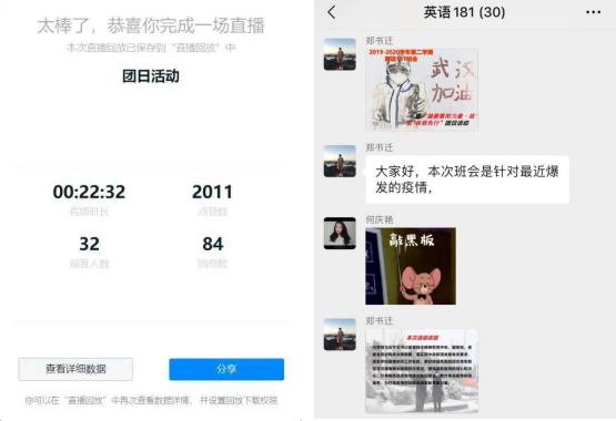 此次活动以探讨疫情防控为主基调,引导广大团员青年在居家学习期间以疫为鉴、把握时间、励志勤学、与时俱进,肩负起时代责任和历史使命。各团支部纷纷以QQ群、微信群等形式组织观看加油祝福短视频、先进党员事迹等进行学习,在沟通互动中提升了成员们对抗“疫”防控的进一步认识,极大的提高了自身社会责任感。同时各团支部组织支部成员拍摄为武汉加油、为中国加油的照片、视频等表达对于武汉、国家的加油与祝福以及对前线工作者的鼓励与尊敬。在不知不觉中,扩大了青年们对抗“疫”防控的知识面,进一步明确了自身肩负的社会责任。