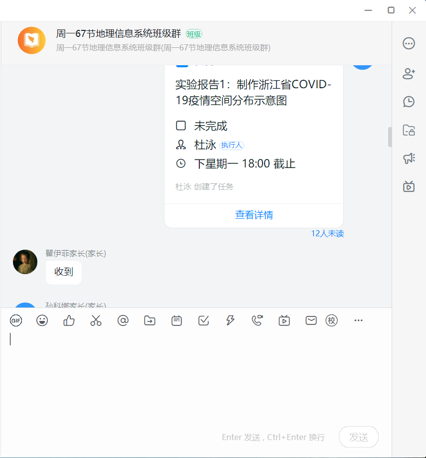 图 4 钉钉平台发布实验任务