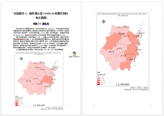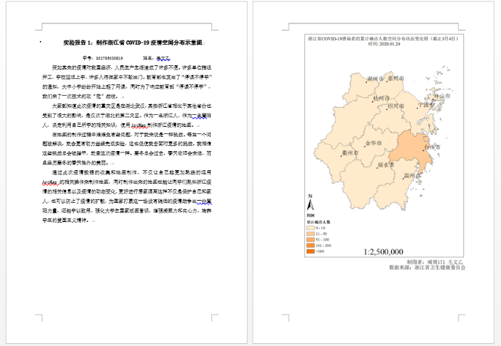 (1)实验报告1:制作浙江省COVID-19疫情空间分布示意图